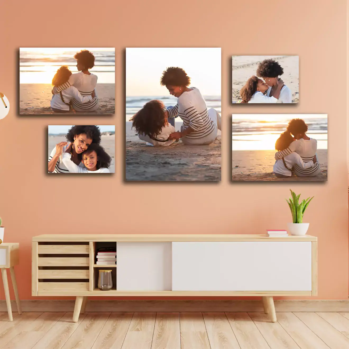 Get those family favourites printed on canvas with ease. Our canvas sets have been laid out by our interior design consultant. The easy-to-see online ordering page provides a beautiful mock-up so you can easily see how your pictures will look in the combo before you order. Just upload your pictures to the RapidStudio online editor, drag and drop your pictures into the frames and voila! You can see exactly how they will look. If you like it, click add to cart, follow the payment and shipping steps and wait for us to deliver it right to your door!